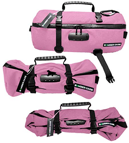 BOMBER CASE - Smell Proof Duffle Bag, Locking Sealed Zipper, Padded Interior, Internal Pockets, Adjustable Cinch Straps, Odor Proof Carbon Lined Filter, Combination Lock, Pink