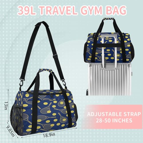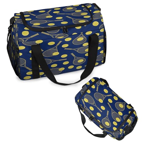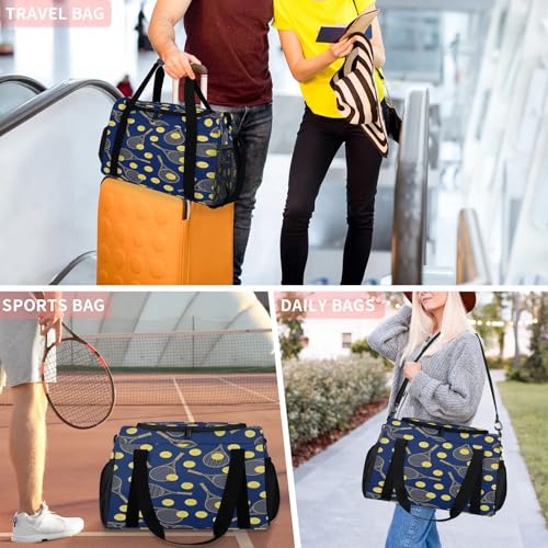 trending ! Yellow tennis racket Travel Duffle Bag - Waterproof weekend luggage bag, men's sports and fitness bag, shipment hospital storage bag, overnight luggage bag with pull rod cover