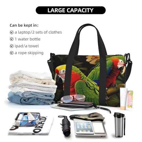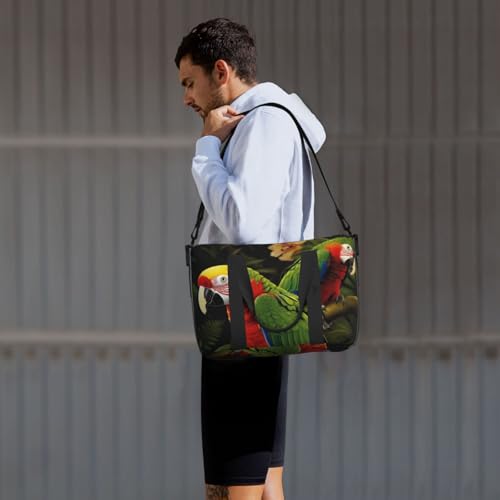 Style Meets Functionality: Style and practicality harmonize in our Tropical Parrot duffel bag. Express your special fashion sense with confidence while effortlessly carrying all your essentials. No longer do you need to make compromises between fashion and functionalityDurable And Waterproof And Easy To Carry: The Tropical Parrot travel bag is made of high-quality polyester fabric which is durable, waterproof and tear resistant. With an adjustable, detachable shoulder strap, you can carry it as a handbag, tote bag, carry-on bag or crossbody bagLarge Capacity: Dimensions of the large handbag Waterproof Weekender Bag are 41 x 29 x 15 cm / 16.1 x 11.4 x 5.9 inches. The big compartment inside is spacious enough for carrying all your travel essentials on short trips or weekend trips: clothes, pants, footwear, cosmetics, toiletries, etcPortable Personal-Item: TSA-Free Duffle shoulder bag, fits perfectly under an airplane seat, The exterior zip pocket allows quick access to essential items during the flight. Additionally, it easily slides onto the handle of your suitcase easily and stays in place. Make airport travel hassle-freeWide Application Duffel Bag: Foldable and portable, your travel essentials. A perfect choice for you to carry all your sports, gym, weekend trips, daily use and travel essentials. Use as business travel bag, Hospital Bag for Labor and Delivery, travel carry on bag for airplane, personal item bag, travel holdall bag, gym tote bag Perfect for everyday use. premium materials and excellent craftsmanship ensure long-lasting durability.