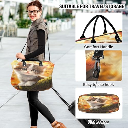 trending ! Weekender Bags Travel Duffel Gym Bag Little Cat Maple Leaf Carry on Overnight Tote Bag with Toiletry Bag for Airplane Travel Trip Gym Yoga