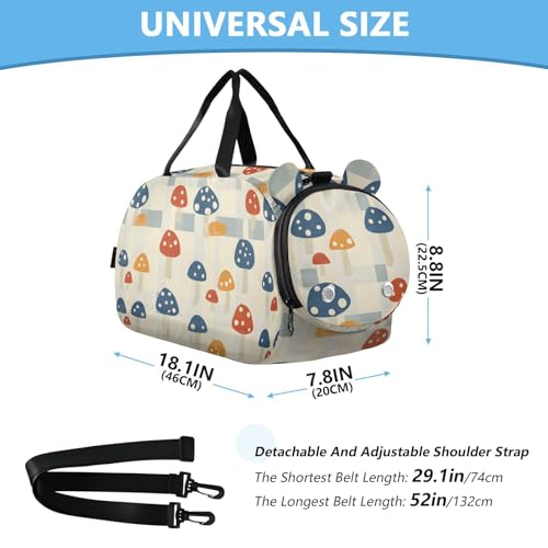 More information about Duffle Bag for Boys or Girls with Shoes Compartment, Colorful Mushroom Print Sports Travel Bag Overnight