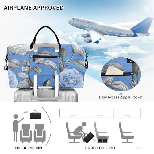 trending ! Rose Travel Gym Bag, Rose Flower Elegant Pattern Weekender Overnight Duffle for Women with Toiletry Bag Travel Swim