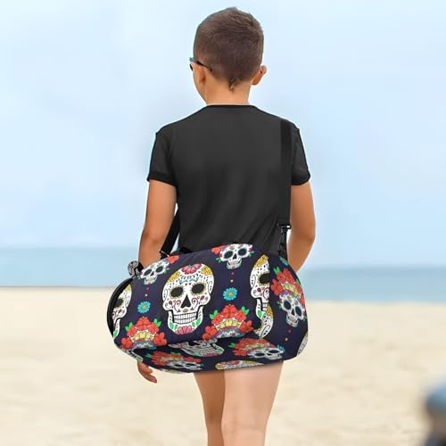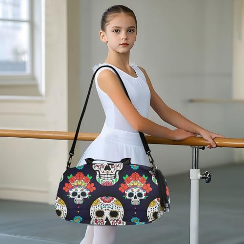 trending ! Luminous Sugar Skulls Kids Overnight Duffle Bag,Gymnastics Sports Dance Bag with Shoe Compartment & Wet Pocket, Travel Weekender Tote for Boys & Girls