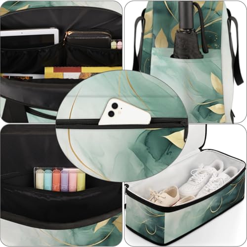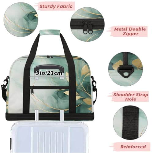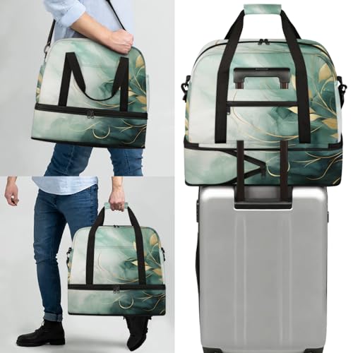 Large Weekender Overnight Bags Abstract Green Leaves Travel Duffel Bag for Women Men Gym Bags With Shoe Compartment Foldie Travel Tote Bag Carry On Personal Item Bag for Travel Gym Sports