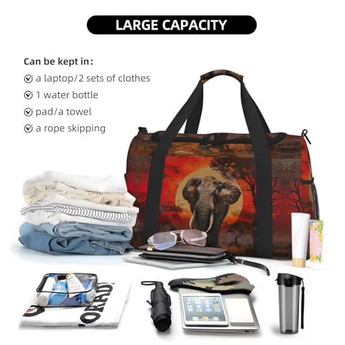 Elephant Sunset Foldable Travel Duffel Bag Tote Carry On Luggage Bag For Weekend Getaways, For Spontaneous Trips
