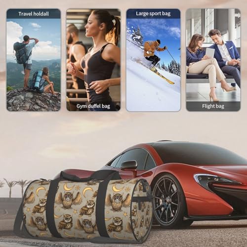 Travel Duffle Bag, Moon Stars Owls Sports Gym Bag for Women Men, Carry On Bag Weekender Overnight Duffel Bag, Personal Item Travel Bag