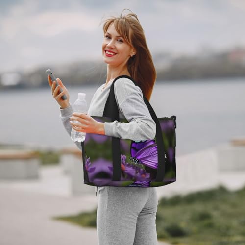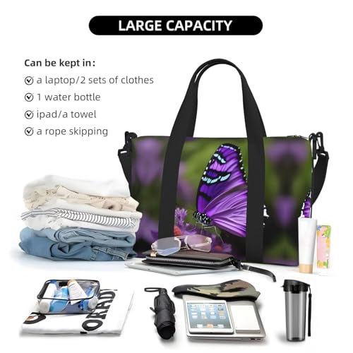 • Multiple pockets: Lovely Purple Butterfly print Sports Gym bag has 1 main pocket, double-slider zipper closure, 2 patch pockets and 1 zipper pocket inside. Large capacity travel totes bag , internal and external organizational pockets ensure you have a place for everything, fit 15.6 inch laptop computer.