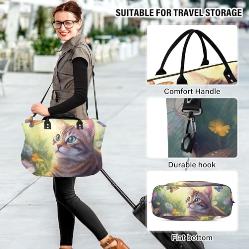 trending ! Large Travel Duffel Bag, Cait and Butterflies Sports Tote Gym Bag, Shoulder Weekender Overnight Bag for Women Men, Carry On Luggage with Toiletry Bags