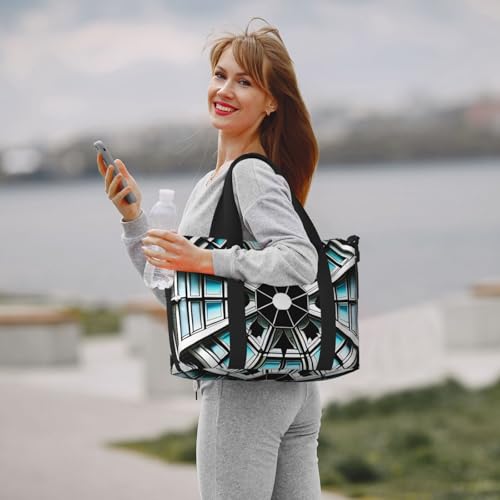 Premium Materials: Made with premium waterproof fabric, this large tote keeps your items safe in unpredictable weather, making it ideal for gym, beach or air travel use.Spacious Size: The spacious interior (9.7 x 10.2 x 13.3) fits everything you need for a weekender trip or airplane essentials. It also works great as a personal item when flying, compliant with most carry on luggage rules.Unique Design: Each bag features a vibrant, eye-catching Octagon Building print that stands out in any crowd. A chic upgrade from your typical gym bag or travel suitcase.Multipurpose Use: This duffle bag is designed for multiple travel needs from a carry on suitcase to an overnight gym tote. Perfect for weekend getaways, business trips or everyday errands.Easy Travel: Lightweight yet sturdy, this travel duffel slides easily under airplane seats. A practical solution for short stays, overnight flights, or as an extra airplane carry bag. Perfect for everyday use. premium materials and excellent craftsmanship ensure long-lasting durability.