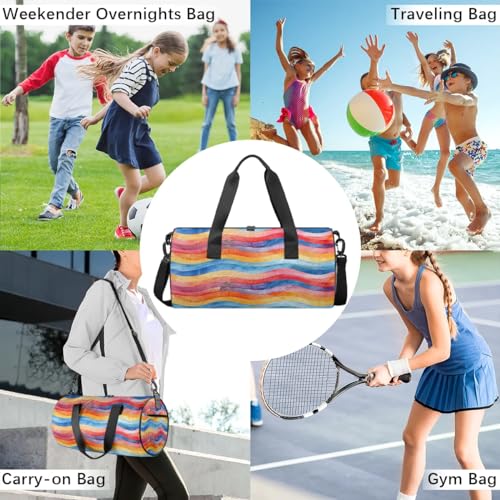Flow Line Colored Travel Gym Bag Waterproof Sport Dance Bag for Women Men Portable Gymnastics Duffel Bags Canvas Tote Carry on Handbag for Workout Overnight Weekender