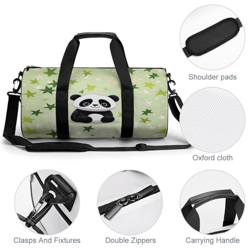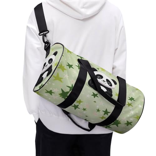 trending ! Cylindrical Gym Bag,Cute Panda Bamboo Star Sports Gym Bag,Workout Bags,travel Weekender Bag,Duffle Travel Bag for Men Women