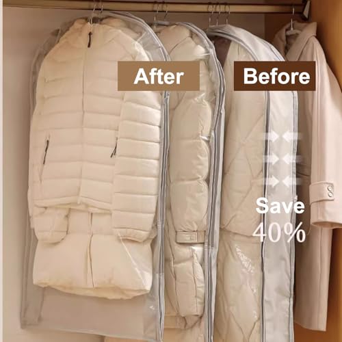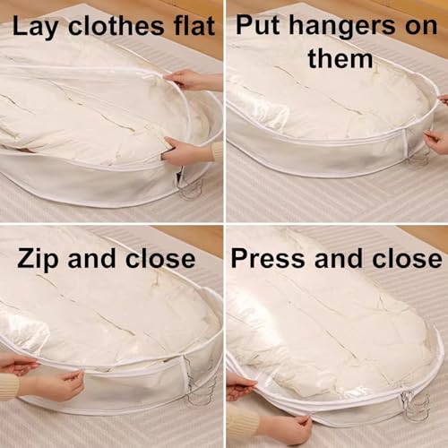 • effortless to Use: Simply place the Hanger and Clothes into the Dust Cover, zip up the top layer, and position the Hanger on the compression layer. Then zip the compression layer, press to remove excess air, and hang it in your Closet. This practical solution helps keep your Clothes protected and organized while saving space. outstanding for Seasonal Storage or Travel!