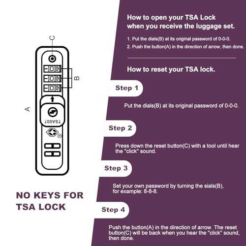 Top quality luggage sets, PC material for hardshell, which makes the luggage more durable, lighter and impact-resistant. 21in is best for carry on, 29in expands 20% for more spaces.Organized and Spacious Interior. The fully lined luggage includes a handy divider and an interior organizer with zippered pocket for smaller items.TSA lock allows only customs agents to inspect your luggage without damaging the lock when traveling and protects your stuffs in luggage and privacy more better. Simply set the combination. No keys are required.Adjustable & sturdy ergonomic 3-step telescoping handle allows you to maneuver in tight spaces and provide effortless movement. Smooth ups and downs for more comfortable carrying.Two Hooks (25' 29' ) can hang your computer bag, backpack, hat, etc., to help you relieve fatigue during your journey. Four effortless spinner wheels maneuver with ease in any direction. Perfect for everyday use. High quality materials and excellent craftsmanship ensure long-lasting durability.