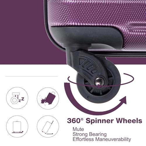Expandable 3-Piece Luggage Set (21", 25", 29"), PC Lightweight & sturdy Suitcase with 360° Spinner Wheels, Two Hooks and TSA Lock, Carry-On & Checked Travel Gear Set (Dark Purple)