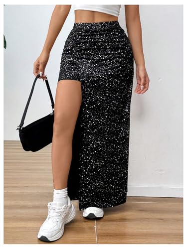This OYOANGLE Women's Split Thigh Sparkly Maxi Skirt High Waisted Party Nightclub Asymmetrical Pencil Skirts combines elegant design with practical functionality. Every detail has been carefully considered to ensure you get the finest possible experience. The first-class construction means this product will serve you well for years to come.