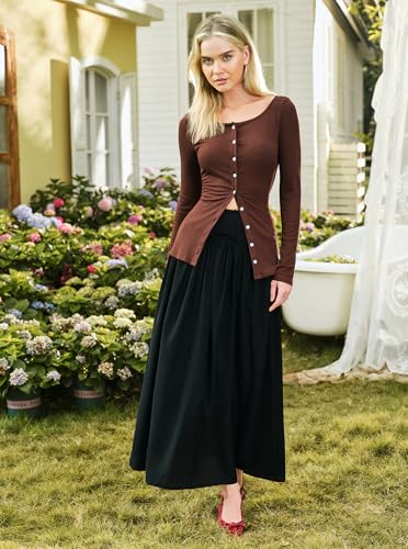 Why Choose Casual Boho A-Line Ruffle Trim Pleated Maxi Skirt High Waisted Flowy Swing Long Skirts for Women Trendy?