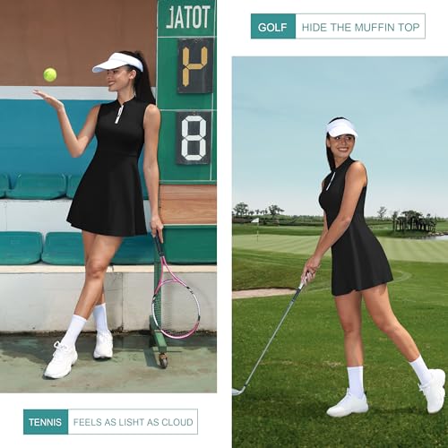 trending ! Tennis Dress for Women Golf Dress with Built in Shorts and Pockets Sleeveless Zipper Workout Athletic Dresses