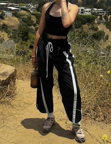 trending ! Wyeysyt Womens Wide Leg Pants Baggy Sweatpants Casual Drawstring Elastic Waist Contrast Color Y2K Track Pants