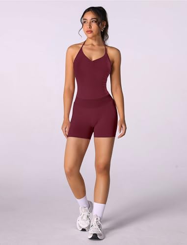 • Butt-lifting Shorts Jogger Outfits: Allow you to move or run with ease with our yoga outfits -- compression sports bra and butt-lifting shorts. Halter neck compression padded sports bra, ruched chest, can show off the collarbone and charming breast curve. Movable pads bra cup, can shape the chest and prevent sagging. Designed with open back, this piece enhance ventilation performance and keep the skin dry, providing both style and comfort.