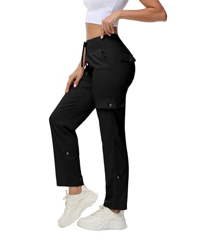 Women's Cargo Hiking Pants rapid Dry Lightweight Elastic Waist Button Pockets Joggers Athletic Sweatpants Travel Casual
