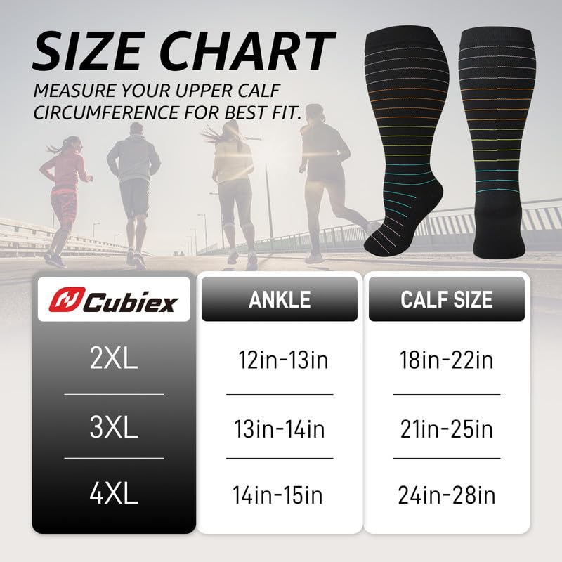 trending ! CUBlEX 4 Pairs Plus Size Compression Socks Unisex 20-30mmHg Knee high XXL- XXXXL for Woman & Man