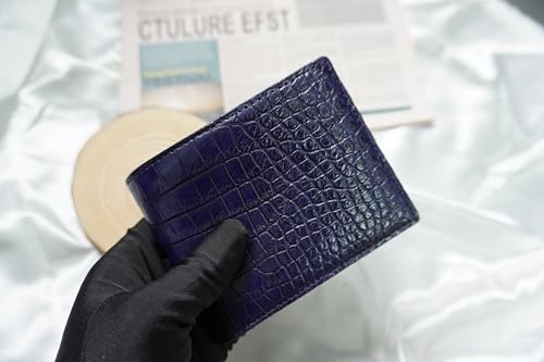 Double Sides Genuine Crocodile Alligator Leather Skin Men's Bifold Wallet, Premium Exotic Leather Wallet (Blue)