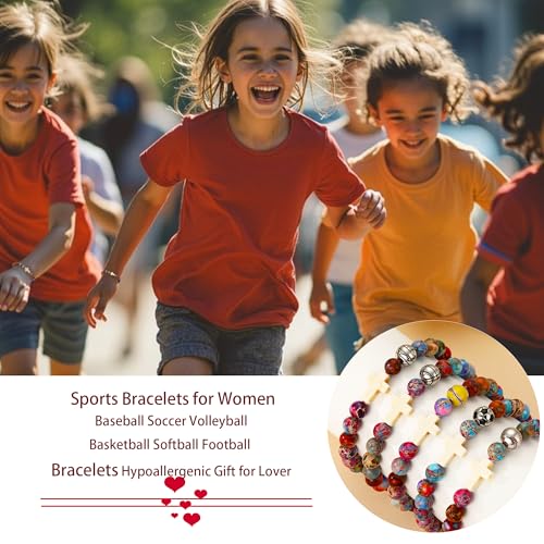 Baseball/Soccer/Volleyball/Basketball/Softball/Football Sports Gifts for Girls Teens Natural Stone Beaded Cross Bracelets Christian Religious Game Day Jewelry Gift