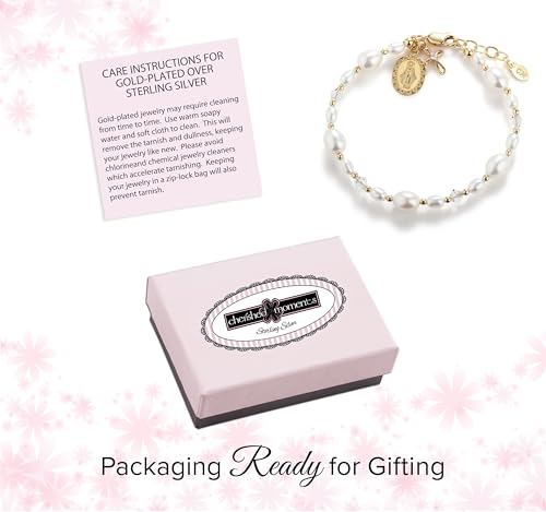 More information about Cherished Moments Children's 14K Gold-Plated Bracelet with Cultured Pearls, Miraculous Medal, and Cross First Communion Gift for Girls (6-12 years)