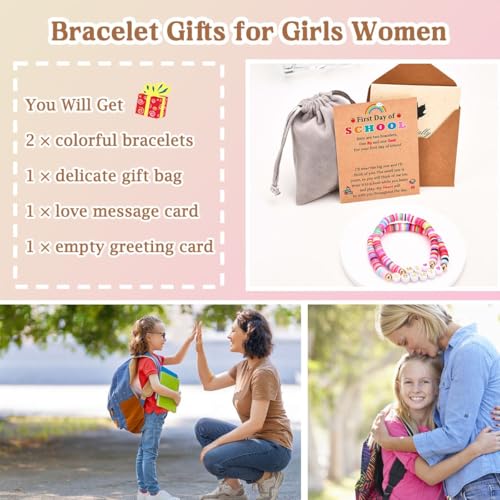 First Day of School Kindergarten Preschool Gifts for Girls, Mommy and Me Matching Bracelets Set, Back to School Gifts for Daughter from Mom