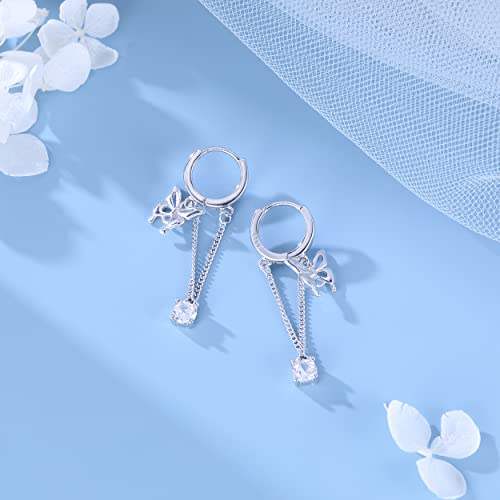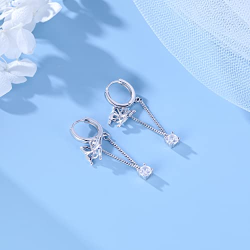 SLUYNZ Sterling Silver Butterfly Drop Dangle Small Hoop Earrings Chain for Women Teens CZ Butterfly Hoop Earrings Huggie