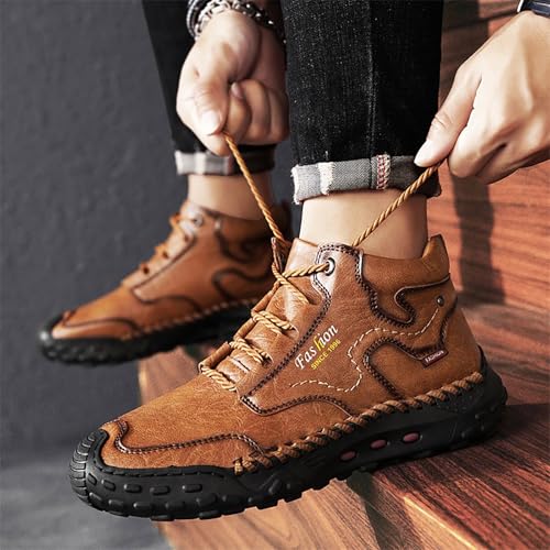 Men's Leather Handmade Platform Hiking Shoes Retro Round Toe Lace-Up Non-Slip Leisure Loafers for Outdoor Hiking Working