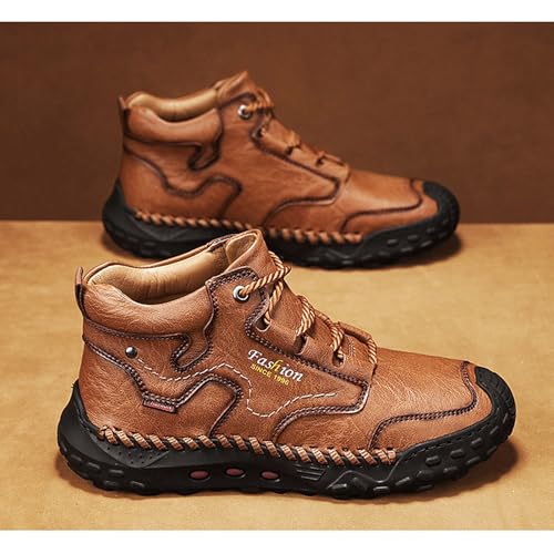 Sole material: RubberOuter material: LeatherClosure type: Pull-On【ANTI-COLLISION TOE CAP】: --The toe cap of this men's casual shoe is made of highly wear-resistant rubber material, which can protect your feet from injuries even on uneven and sharp surfaces. It is one of the fashions for outdoor enthusiasts.【UPPER MATERIAL】: --Men's casual outdoor hiking boots are a pair of carefully crafted shoes, the upper is made of durable leather, ensuring durability and will not deform and scratch-resistant, allowing you to experience a pleasant experience.【NON-SLIP OUTSOLE】: --The sole of this men's work shoe is made of non-slip rubber material, and the outsole is designed with non-slip texture to ensure that you maintain excellent grip in slippery and mountainous conditions, allowing you to walk stably and comfortably.【COMFORTABLE EXPERIENCE】: --The insole of men's casual hiking boots is made of soft PU material, which not only brings you extreme comfort, but also provides excellent cushioning and high elasticity for your feet, allowing you to walk comfortably.【VARIOUS OCCASIONS】: --Our men's casual leather boots bring more fun to your life, such as hiking, walking, camping, mountaineering, cycling, fishing, driving or hiking, etc. , these boots effortlessly enhance your style, making them an ideal choice. Perfect for everyday use. premium materials and excellent craftsmanship ensure long-lasting durability.