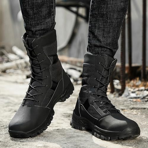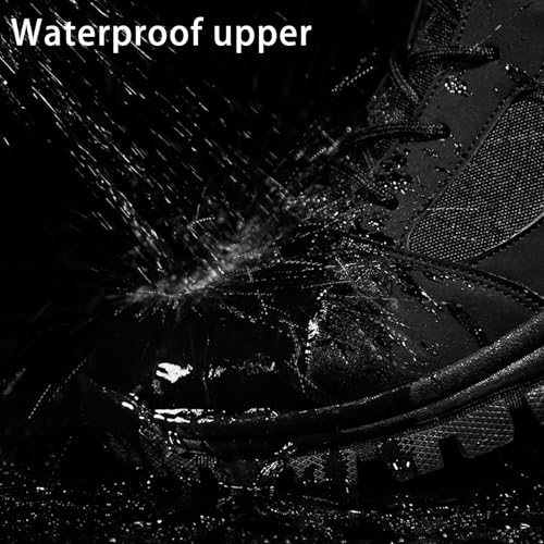 Sole material: RubberOuter material: Oxford clothClosure type: Lace-UpWater resistance level: Waterproof【High-quality materials】Men's waterproof hiking boots are made of waterproof synthetic material and have a waterproof and breathable membrane. This feature ensures that your feet always stay dry and can effectively repel water even in wet conditions.【Stable and pleasant】Designed with rubber toe cap to prevent your toes from being injured due to collision. The gusseted tongue prevents pebbles, sand, dirt and other debris from entering this tactical boot. Protect your feet from external irritation during outdoor activities.【Non-slip rubber sole】Non-slip flexible rubber sole and shock absorption design provide excellent comfort, Lug sole has excellent non-slip performance and strong grip, which can greatly improve people's safety and comfort when walking.【Applicable Occasions】Urban casual fashion style, suitable for outdoor and daily use. It has key performance attributes in sports and environment, and is extremely versatile, whether it is mountaineering, hiking, camping or urban travel.【Tips】Due to the effect of shooting and monitor screen, the actual color of the shoes may be slightly different from the pictures. Please refer to the size chart before ordering, if between two sizes, please choose the larger size. Perfect for everyday use. premium materials and excellent craftsmanship ensure long-lasting durability.