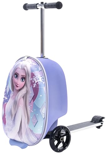 prompt Forward Frozen Scooter Suitcase for Kids – 18” Lightweight Disney Frozen Luggage for Girls – (Luggage 11lbs and Scooter 100lbs) (Frozen)