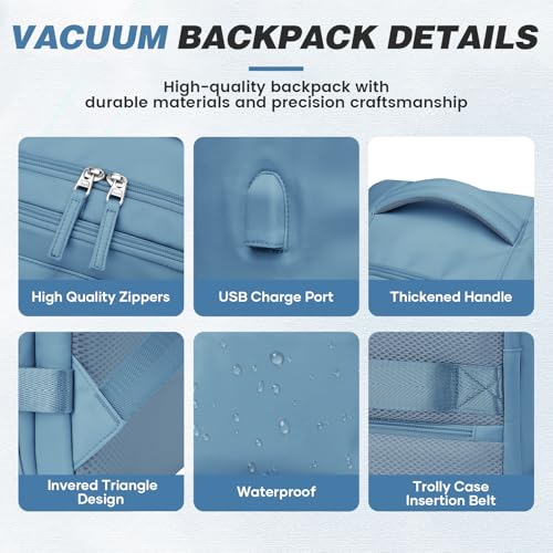 trending ! Travel Backpack with Vacuum System, Personal Item Carry On Flight Approved 18x14x8 inches, Air Compression Backpack with Pump Large Seal Backpacks for Women Men Mochila de Viaje