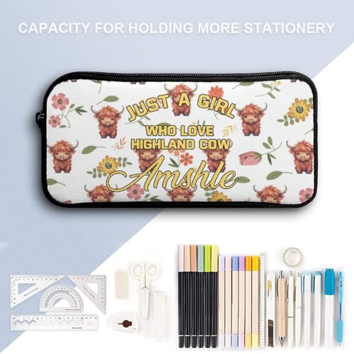 Personalized Highland Cow Backpacks with Lunch Box Pencil Pouch, Custom Name Cute Bookbag Travel Bag 3Pcs Set for Men Women (Style 7)