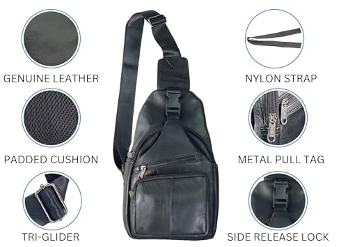 • Leather sling bag is hassle-free to carry, that H*L*W size is 13" x 8.5" x 3.5" and weighs only 0.66 lbs. The fashionable shoulder strap is adjustable and can be adjusted from 25'' to 48''. It has side release lock to secure stuff in7291921490268 inside.