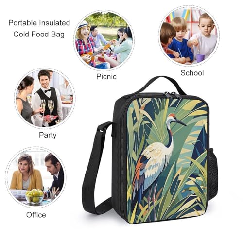 trending ! Printed Backpack With Lunch Pack Storage Box Case Crane Bird Wild Plants 3pcs Lightweight Travel Backpack