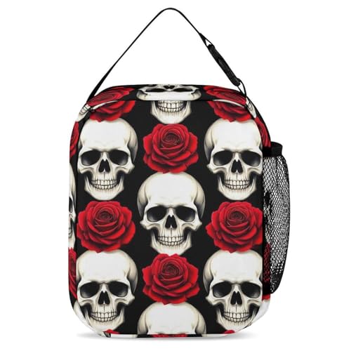 Backpack with Lunch Box & Cosmetic Bag Set Dark Black Red Rose Skull Bookbag Daypack Set Backpack with Lunch Bag Storage Bags