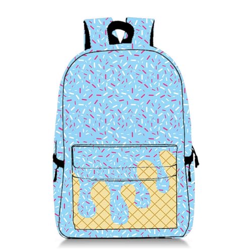 Fun Gift Idea: Featuring a joyful ice cream design and vibrant colors, this backpack makes a delightful present for anyone who loves playful stylesComfortable to Carry: Equipped with soft, adjustable shoulder straps, it ensures easy and pleasant wear throughout your dayRoomy and Organized: Offers ample space with a large main compartment plus convenient front and side pockets, keeping your essentials neatly stored and readily accessibleBuilt for Daily Adventures: Crafted from durable water-resistant fabric, it provides reliable protection and long-lasting performance, ready for everyday activities and varying weatherLight and Handy: Effortlessly portable, it's your perfect companion for travel, shopping trips, or any outing, combining practicality with its cheerful look Perfect for everyday use. premium materials and excellent craftsmanship ensure long-lasting durability.