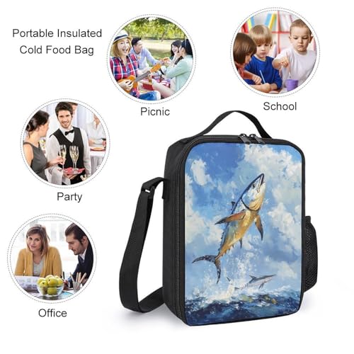 Tuna Fish Leaping Out Of Water retro Backpack Lunch Bag Pencil Case 3 Piece Set Travel Daypack