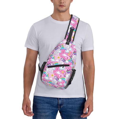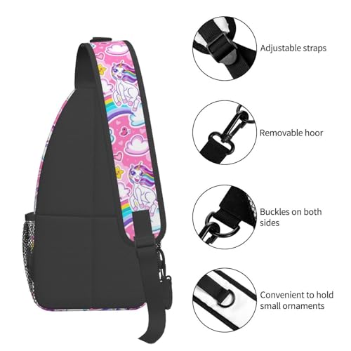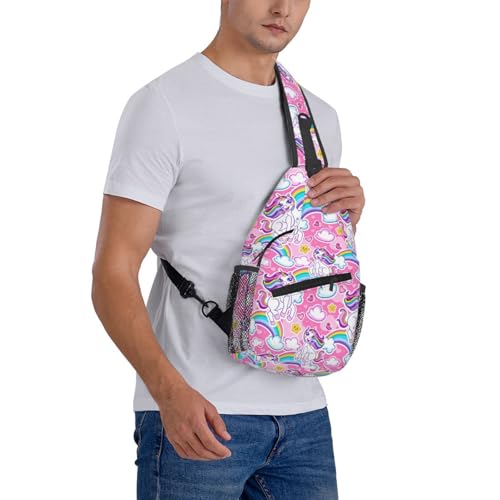 Cute cheerful unicorns rainbow Sling Backpack Unisex Crossbody Chest Bag Shoulder Chest Bag For Women Men Hiking Travel