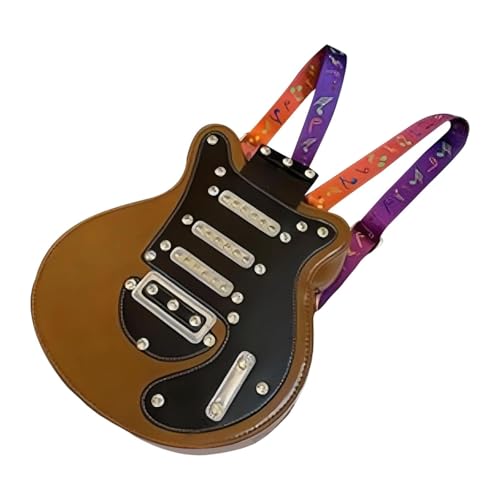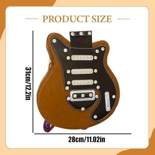 trending ! Women Guitar Shaped Backpack Adjustable Shoulder Straps for Party, Brown