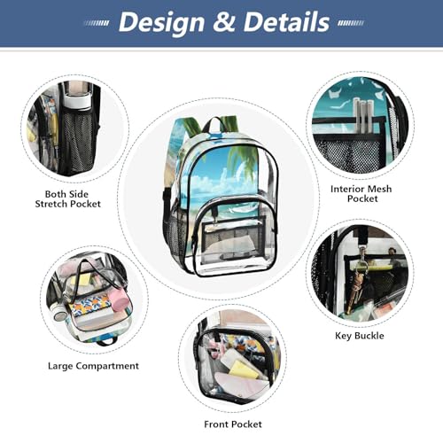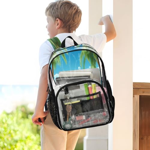 Palm Sea Beach Clear Backpack - Stadium Approved Large 15.7-inch Waterproof Transparent Bag for Sports, Concerts, Work, Travel#142