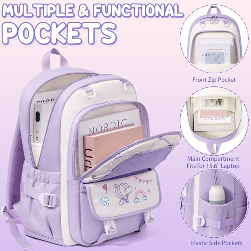 4-IN-1 BACKPACK SET FOR GIRLS: Fimibuke backpack for school designed to meet all the needs of kids aged 4 and up. Includes a kid girls backpack, lunch box, pencil pouch & earbud bag. More ample storage space and comfor detials, this girls backpack with lunch box kids bookbag for girls ensures that can carry their belongings with ease and style. Perfect gifts choice for ages 6-15 elementary, middle or high school student. Add a splash of color to your girl's school days with our teens backpackMULTI POCKETS & LARGE CAPACITY: Measuring 17x12x6.5, Fimibuke girls' school backpack features 4 compartments of various sizes and 2 side pockets to maximize storage efficiency. The spacious main compartment fits books, a 15 laptop and school supplies, while the velcro pocket, side pockets and back zipper pocket of the kids backpack are perfect for storing keys, phones, water bottles - keeping everything organized. Recommended Age Grading: 4+ years oldWATER-RESISTANT MATERIALS: Constructed from premium polyester fiber, this bookbag with lunch box is durable & water-resistant, protecting girls backpacks ages 6-8 8-10 from unexpected spills or light rain. The casual backpacks for school girls feature smooth zippers and reinforced stitching ensure tear resistance and long-lasting use. Whether for traveling, camping, picnics, hiking or day trips, our middle school backpack is sure to become a favorite accessory for 7 8 9 10 11 12 years old girlsCONVENIENT & pleasant: Equipped with extra thickened & widened padded shoulder straps, our girls back pack effectively reduce shoulder pressure even when fully loaded. The breathable sponge back panel of the bookbag for girls helps distribute weight evenly, promotes airflow, and prevents sweating during long wear. Thickened top handle to reduce the burden. A luggage strap of back side allows the backpack to attach securely to a suitcase, freeing up hands and making travel more convenientPERFECT GIFT & GUARANTEE: Designed with dreamy colors, charming embroidery patterns and playful star pins, this pins kids backpack and lunch box set adds style and individuality, helping your kid stand out. If you're looking school laptop backpack bookbag set for your daughter, niece, girlfriend, this adorable girls school bag set makes a delightful gift for birthday, holidays, back-to-school season or Christmas. Any stain problem with our toddler backpack for girls, Just contact us for solutionINSULATED LUNCH BAG & PENCIL POUCH: The four-layer insulated kids lunch bag keeps food cold, warm, or fresh for hours. It's dirt-resistant, durable and easy to clean, with a lightweight handle for easy carrying - perfect for school or on the go. The large pencil pouch has a wrist strap and fits essentials like pens and highlighters, making it ideal for daily school routines. This adorable hearphene bag is practical with hook designed allow it to be safety clipped onto the backpack for girls Perfect for everyday use. premium materials and excellent craftsmanship ensure long-lasting durability.