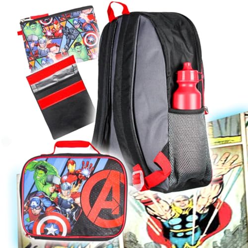 • 5-PIECE SET - The Avengers 5-piece accessories set includes a backpack, lunchbox, water bottle, snack pack, and a zippered utility case