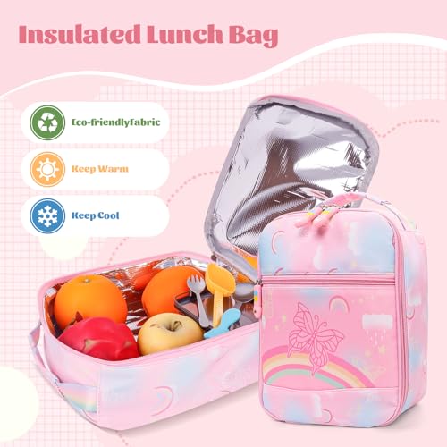Care instructions: Hand Wash OnlyPremium Quality Materials: Our children's backpack is thoughtfully designed with high-quality polyester fabric and high-density waterproof materials for durability and long-lasting use. This cute, kawaii school bag set includes 1 butterfly rainbow backpack, 1 lunch bag, and 1 pencil case.Whether you're looking for kids' backpacks for boys or girls with a lunch box, this set offers a versatile and reliable solution.Versatile Sizes for Every Need: Available in two sizes—medium (16.5 x 11.8 x 6.3 inches) and large (17.5 x 12.6 x 7 inches)—these backpacks provide ample space for books, supplies, and more. The pencil case (4 x 8 inches) and lunch bag (9 x 10 x 5 inches) offer plenty of room for essentials and snacks. With its spacious design, this backpack is ideal for kids, teens, and elementary students, making it a perfect companion for school or daily activities.Smart Organization: Designed with practicality in mind, this butterfly rainbow backpack features a roomy main compartment with a dedicated laptop pocket, an auxiliary zipper pocket that opens 180 degrees with multiple layers for organization, and two side pockets for umbrellas, bottles, or cups. This makes it the ultimate school bag for children and teens who value both style and functionality.Comfort & Safety First: The S-shaped shoulder straps (2.8 x 0.4 inches) are widened and thickened to evenly distribute weight and reduce shoulder strain. Adjustable chest straps provide extra support, while reflective strips enhance visibility and safety during nighttime use. Smooth, high-quality zippers make these backpacks easy to use. Whether it's for a cute teen bookbag or a children's school bag, comfort and safety are always a top priority.100% Satisfaction Guarantee: We stand behind the quality of our butterfly rainbow backpack for kids. If you’re not completely satisfied with your purchase, simply reach out via the “Contact Seller” option, and we’ll resolve your concerns promptly. Our mission is to deliver the best kids' backpacks for boys and girls with lunch boxes and ensure your complete satisfaction. Perfect for everyday use. High quality materials and excellent craftsmanship ensure long-lasting durability.