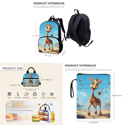 More information about Giraffe School Bag for Girls 8-10 Toddler Girl Backpack and Lunch Box Set and Book Sleeve Casual Schoolbag Backpacks Set of 3 School Supplies for Teen Girls