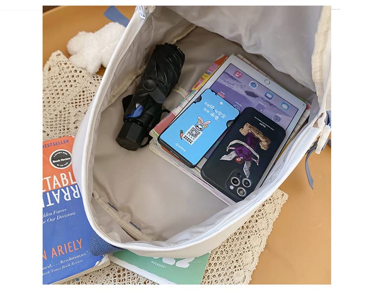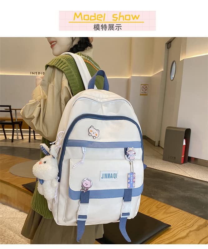 Kawaii Backpack with Cute Pin Accessories Plush Pendant Student Bag Large Capacity Waterproof Travel Backpack(White)