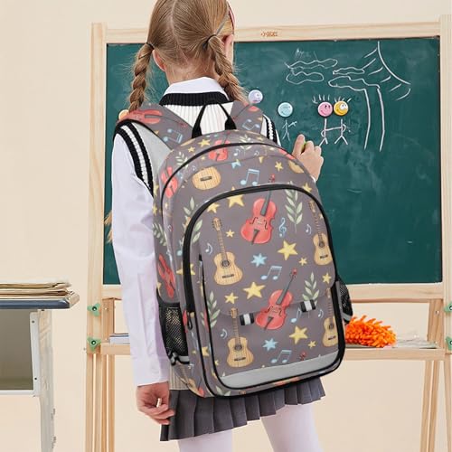 More information about DOMIKING Watercolor Guitar Dark Gray Kids Backpack for Girls Boys School Backpack for Elementary Preschool Laptop Backpacks Bookbag for Travel Women Toddler Men